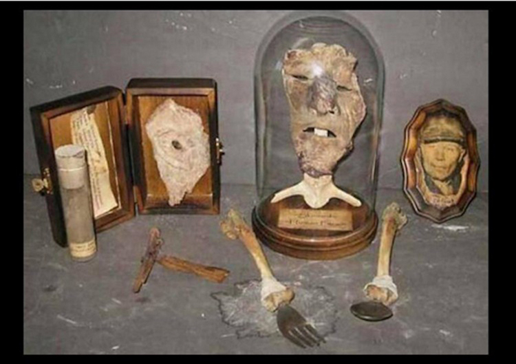 En su habitación encontraron artilugios aun más extraños; una caja de zapatos debajo de la cama contenía genitales femeninos secos y la cabecera de su cama tenían craneos humanos en sus topes.