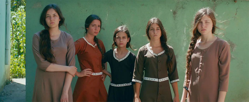 Turquía. Cinco hermanas terminan sus respectivos cursos escolares y lo celebran bañándose en el mar con sus amigos llevando los uniformes del colegio. Lo que ellas ven como un juego es señalado por todos los adultos del pueblo, que tachan su comportamiento de inapropiado, puesto que la mayoría son adolescentes y sus ropas mojadas dejaban ver sus formas de mujer.