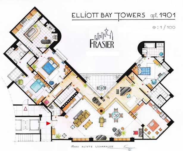 ¿Cuántas veces hemos querido vivir en las casas de nuestros personajes favoritos? Hoy os queremos dar a conocer los trabajos de un artista que se dedica a diseñar planos de los pisos de series famosas. Son extremadamente bien detallados y nos acercan un poco más a los personajes de nuestras sitcoms favoritas, y alguna que otra película; Iñaki Aliste Lizarralde. Él es diseñador de interiores y viene del País Basco. Estos son algunos de sus dibujos: