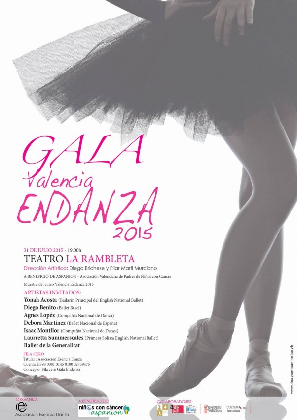 Para los amantes de la danza de Valencia el próximo 31 de julio en el Teatro La Rambleta, tendréis una oportunidad increíble de ver a jóvenes talentos del ballet clásico así cómo estrellas consagradas de renombre internacional en la gala Valencia Endanza 2015. El arte de los más jóvenes aprendices y de los grandes bailarines actuales cómo Yonah Acosta o Laurretta Summerscales harán las delícias del público y arrancarán seguro más de una ovación.